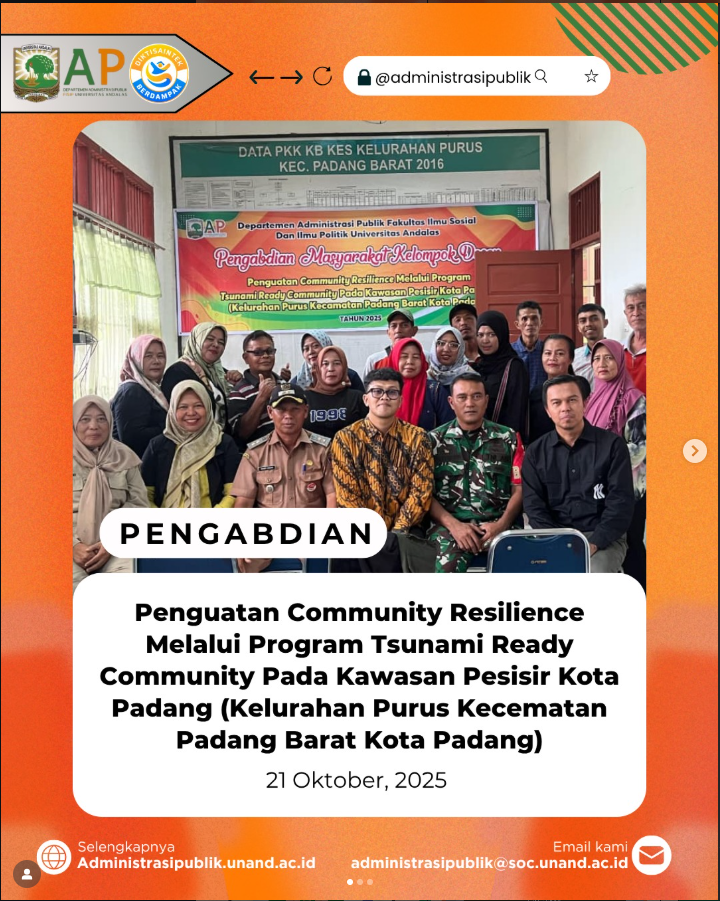 Departemen Administrasi Publik Fakultas Ilmu Sosial dan Ilmu Politik (FISIP) Universitas Andalas melaksanakan kegiatan Pengabdian kepada Masyarakat 2025 dengan tema:“Penguatan Community Resilience […]
