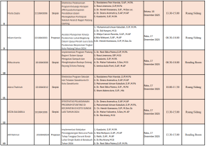 Semoga seluruh mahasiswa yang terjadwal dapat memanfaatkan kesempatan ini untuk memaparkan hasil penelitian dengan baik. Jangan lupa mempersiapkan materi dengan matang dan mengikuti prosedur yang berlaku.
